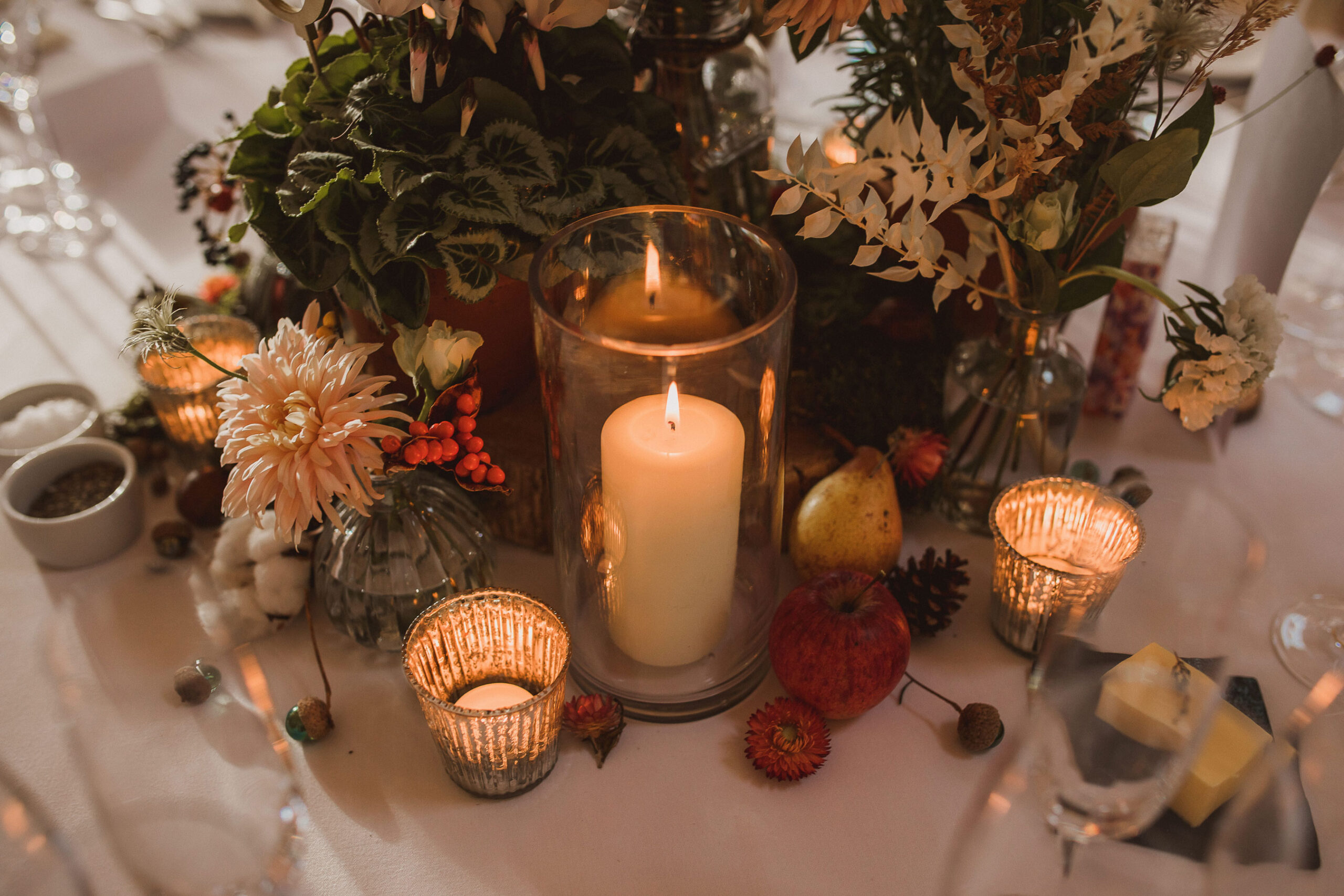 Candles & foliage can transform a space into something beautifully magical – simple, but really effective if you’re on a tight budget.
